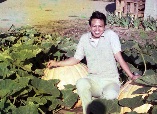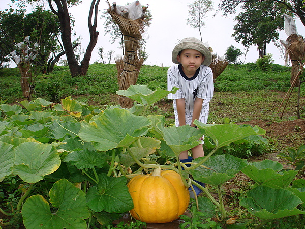 1. 金瓜坐正之後已由渾圓變扁,長得端正勻稱,現出「馬車原形」的輪廓。「小哈利波特」與金瓜合影好可愛。憶起卄六年前「年紀大的哈利波特」(那時是年紀大的現在是老年的),首見到大金瓜就非常喜愛,意想不到也可以在自己的地上種出金瓜,只盼秋天時也能如照片中的美國大金瓜。