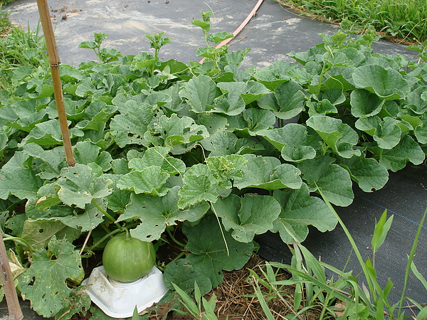 4.綠香瓜開始結果,已有五顆如飯碗大,拱豬社貴賓沒有吃到黃金西瓜,希望25日光臨能有綠玉香瓜口福。