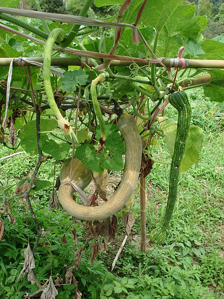 3.義大利葫蘆瓜又結三條,但因蟲害已萎兩條,成長的一條已2ft長但也滿身蟲啃斑。