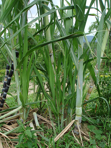 2.日前吃一根節短而細的甘蔗解渴,就有多位詢問:第一批栽種作物是鳳梨&甘蔗怎麼未見提起就被吃了? 鳳梨一年來未死也未長,原植地已被甘蔗&辣椒侵占,剩下來最邊三株苦候「笛聲」。紅甘蔗白甘蔗都已粗大有樣了,有一新出白甘蔗一節一節似嬰兒臂,超過2”粗,比四十多年前之泰山甘蔗強些吧? 也不致再現開園之初的「牧草」之譏。