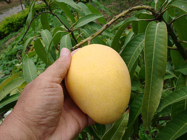 1.首兩個金蜜芒果由老同學享用,我沒有嚐到,今發現有一個熟落地上,合該屬我享受,「金蜜芒果」具有金黃色的外表,不論大小﹑香味﹑甜酸度﹑﹑﹑都介於愛文與土芒果之間,有些粗短纖維但不卡牙,肉質厚實口感Q,果肉粉嫩、水份飽滿,且保有土芒果般的風味,蜂蜜般的香氣,甜度高達20º Brix而且甜而不膩,果核厚度不到2mm薄薄一片。總而言之加上心理因素是美味極了。