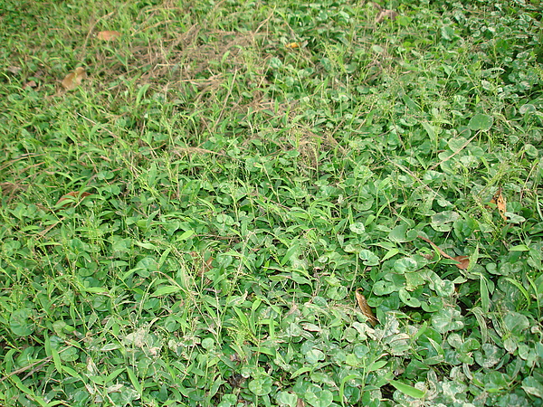 馬蹄金與竹葉草交會處混雜生長很難看,要保存馬蹄金清除盤纏其中細小竹葉草太困難,專家指稱只有快刀斬亂麻一起鏟除讓馬蹄金重新展佈,既要培育馬蹄金就要將其四周之他草清除好讓其蔓延擴展。為此工事兩個月內第三度雇工為美化地被而努力,好草區愈大工愈多週而復始沒完沒了。