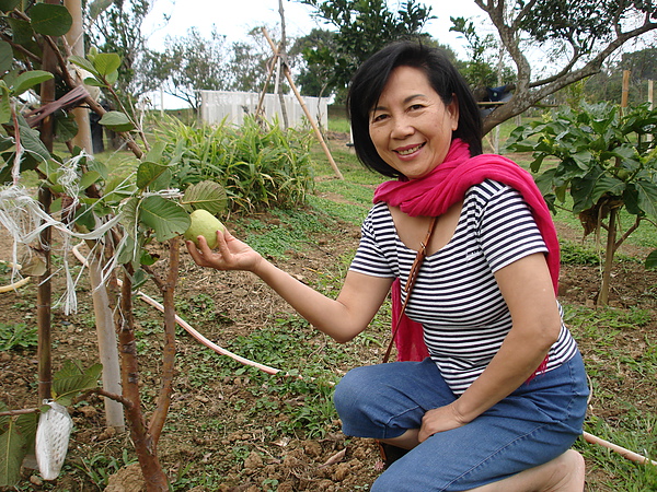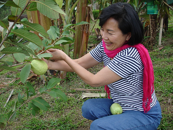 老同學Patrick & Charles由美國&大陸歸國,今連袂光臨春天。Charles要求為他留文旦干,接令後選留30個外表無痕的放置陰涼通風處,三個月下來多數腐爛到今天碩果僅存10粒(比中秋時更細軟香甜)總算交差。柳丁、水晶芭樂、無子芭樂(口感脆嫩清香)都是第一次結果之首粒,請JUDY親摘,貴賓都讚楊農夫水果樣樣都好吃。
