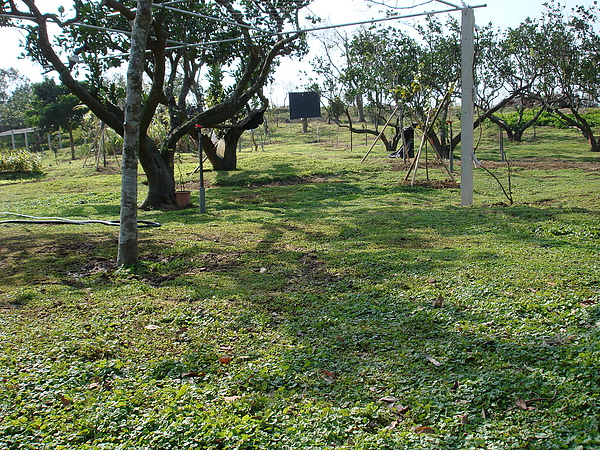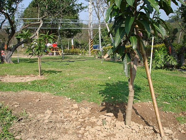 上週雇農婦拔草七工作天,本週又請蘇技農幫助將園中起伏土丘土坑整平順,這句話說來簡單做起來工程繁瑣,不論高地窪地要先掀起草坪,挖高補窪後再植回覆蓋草,如遇原種花木果樹與地表高低不配合還得挖出重種,沖蝕嚴重之百米灌溉溝也取黏土修補調整較均一斜率,看看照片是否比原先凹凸不平順眼多了。
