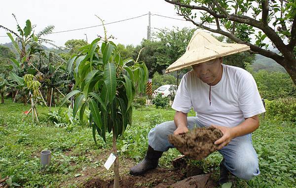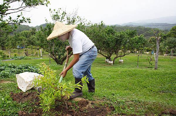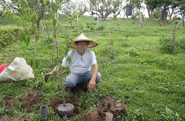 Peter C及Ted Y陪伴到田尾買果樹苗-紅蜜葡萄、紅棗、熱帶水蜜桃、巨大石榴、蜜桃芒果。Ted Y連續兩天上春天幫農,新買果樹全由Ted親手種植,第二天又為P園除文旦之外全部瓜果樹施肥,大小60餘株樹施台肥43號一袋40KG。陰天有微風工作不會太熱,累了坐庭園桌喝茶.聊往事.觀遠山(目前桐花開山坡有幾大遍白雪).看近樹,Ted說:「寧靜.涼爽.風景美比日前坐日月潭邊舒服」。