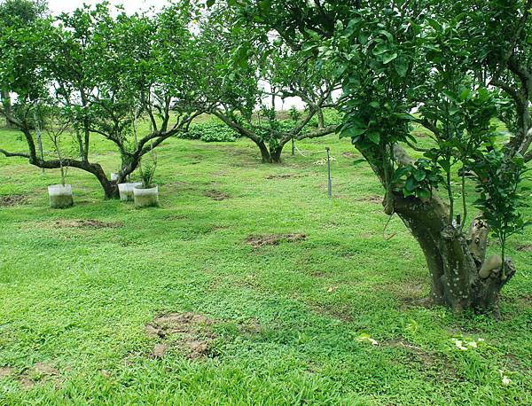 樹上小文旦雖不多但已有雞蛋般大,張老師教導果實膨大期需要大量的營養,委請蘇技農文旦樹四方挖溝每株施#43肥6kg乾雞糞20kg,台肥43成份為15-15-15-4,含氧化鎂4%能使肥效顯著結果甜度高,雞糞含磷量最豐,磷為花、果主要元素,磷不足果實小、品質差容易脫落。