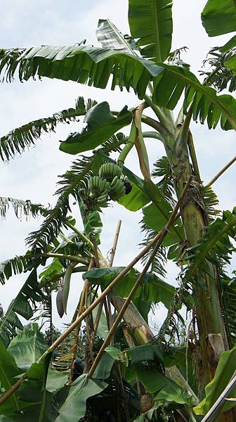 芭蕉樹高大每受風害損失慘重,原想要汰除芭蕉只種矮蕉,卻因去年三串芭蕉極獲好評,才於殘根留兩芽續植,這兩芽因先天不足又遇颱風傾倒,死蕉當成活蕉種扶起斜栽,居然也成長吐蕾但只有五把瘦弱花,健壯蕉樹能開出十把結果花,書刊教導留八把割蕾可得最好品質最高重量,有網友傳來照片一坨香蕉超過3600根,建議回復自然不要割蕾,但是楊老農的蕉順其自然只會拖一條長長的光果柱尾巴而已,能幫助找這結3600根之蕉種嗎?