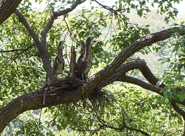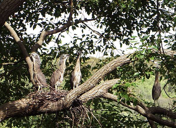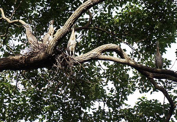 黑冠麻鷺娃兒真是一暝大一寸,前日站一會兒還要趴下休息,今天四隻全部都能長時間站立了,站得更直更有力,並且已勇敢離巢沿樹幹散步探索周邊環境,接下來可能是鼓動翅膀預備飛行,很高興四隻全部順利成長,一般每窩多只育出兩三隻,育成四隻者極少見,但也有些不捨觀賞雛鳥成長的機會將結束了。