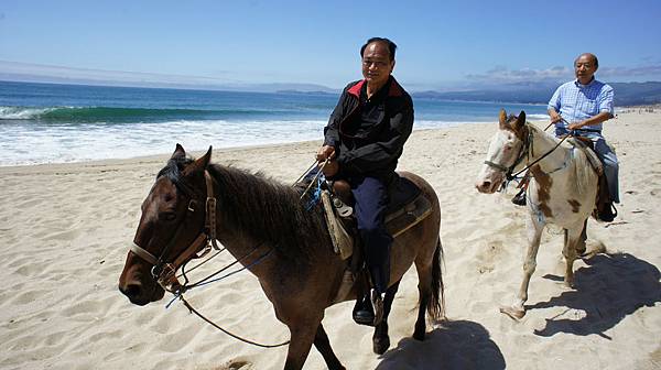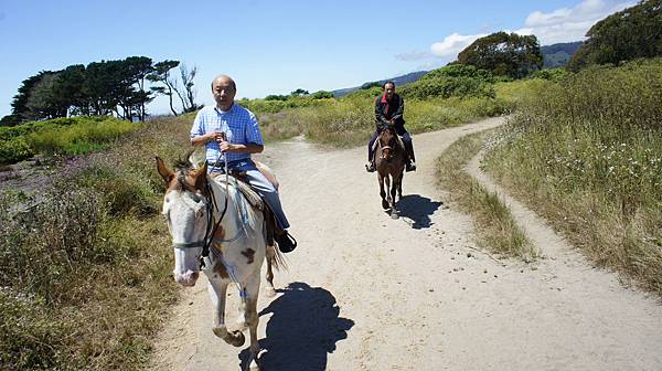 Ted Y招待我騎馬,以前「坐馬」由馬伕牽著繞圈子,初體驗「騎馬」自己操控走.停.轉向,過草原越沼澤攀陡坡下海濱,兩小時後下馬已難站立。