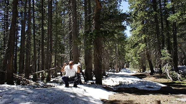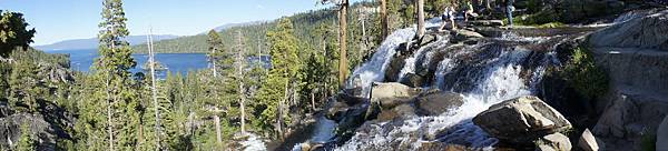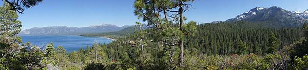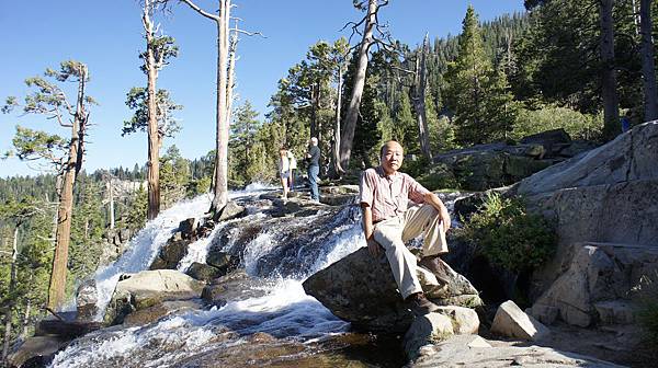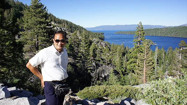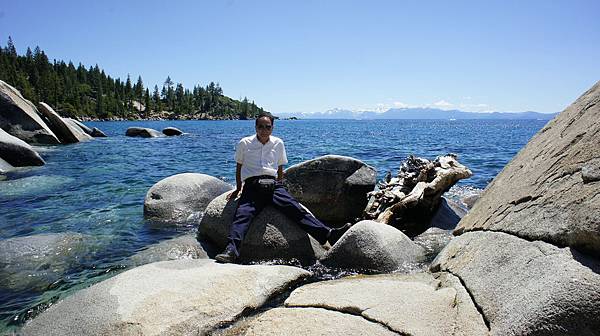 Ted又帶我赴海拔七千呎之高山湖Lake Taheo,湖寬20km長35km四周高山環抱湖水清澈,反映天空一遍湛藍,分兩天環湖一周百餘公里歷遊各景點,正屬大暑節氣但Taheo都在10℃左右高山頂仍白頭,路邊陰涼處尚有積雪。