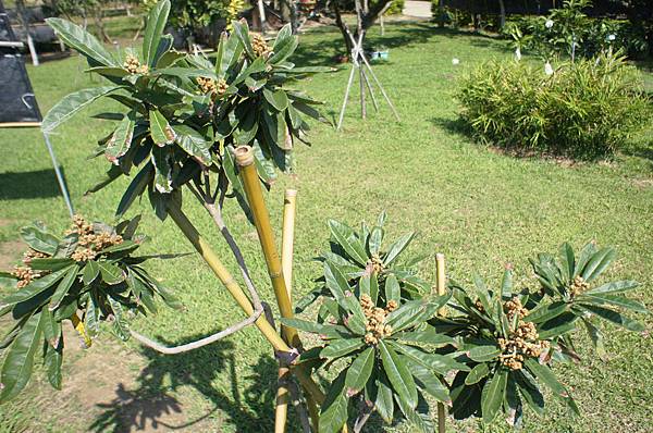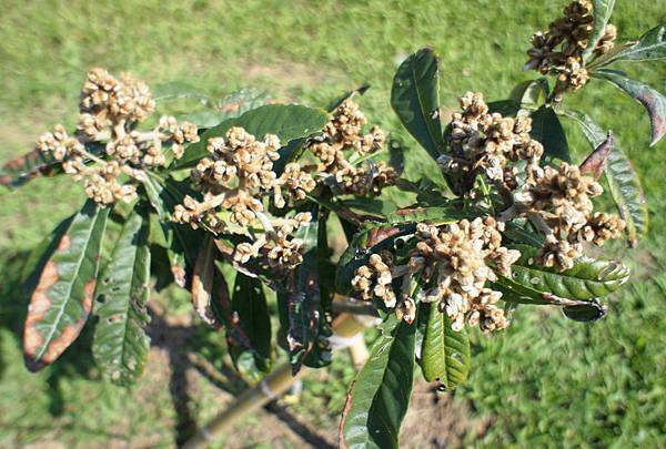 這陣子枇杷熱絡起來,Peter C的大農場引進枇杷,O園今天再種一株枇杷,11月為枇杷開花著果期,P園中兩棵枇杷陸陸續續的開出花來,貼張照片給Peter比較兩地花芽生長差異,也請枇杷專家逃農再教一次何時&如何疏花.疏果,雖年年有收成但都沒幾粒,希望第三年能質與量均可提升,春季枇杷成熟時,適逢水果種類及數量均少之果欠期,盼望能有佳果待貴賓。