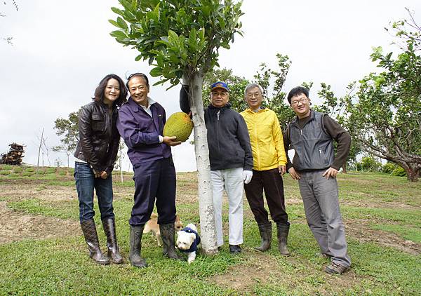 O&P園主與客不約而同週六來園,蔣先生再度蒞臨,稱讚比兩年前漂亮多了,女兒也也變稀客來看新整地,眾人覬覦的西施柚.帝王柑.蜜柳丁..又逢一串矮蕉熟,趁嘉賓雲集,都獻寶請貴賓親手採擷,黃百香果.神秘果.菠蘿蜜也錦上添花,這些市場沒有的珍奇水果,蔣先生還是首次品嚐新滋味,美中不足是冷風颼颼,不能坐下來聊天吃鮮果,提早打退堂鼓未遂盡歡。
