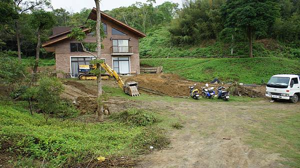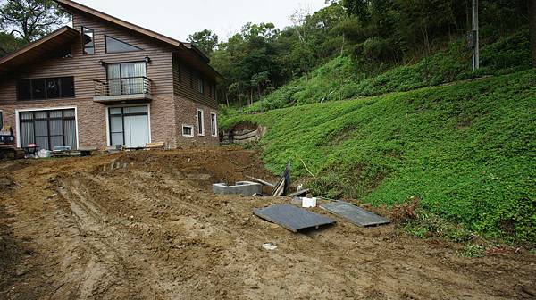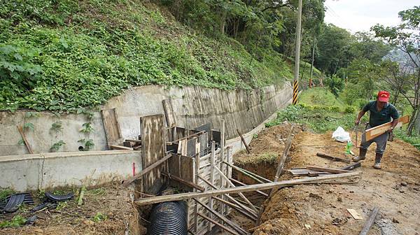100.12.10工程開工,先建社區北側排水系統,建大排水溝及陰井匯於F園前沉沙池。南側排水系統將利用現有路面下設置排水系統及沉沙池,完成後社區有合格水保設施,個別戶才能依據申請建農舍。