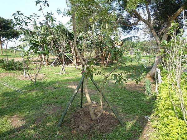 兩年前女兒陪逛台北建國花市,買一株幹徑1in楊梅,一年都成長良好(附張照片那時園地好荒涼),不知何故會突然整株枯槁。心地979有三株4in徑楊梅樹,今年結實累累滿樹嬌艷鮮紅(連接觀賞楊梅成熟時.種楊梅 ),六月份收成時送我一袋微酸帶甜,還是第一次吃楊梅鮮果,推翻印象裏黑小蜜餞的模樣,也決定要再補植一株,到Mr.James買楊梅樹農園購一棵3in徑2.5m高,現在天候合適移植,今將大果楊梅樹植於東向第一排。