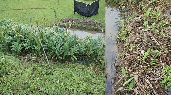 A園水池邊坡種植大片薑花,蔓延太多陳園主部份鏟除另植其他花卉,撿取一大袋薑塊(地下莖)於O&P園種植,因野薑花是生長水濱濕地之植群,但是兩園都沒有水池,複製筆筒樹種植模式,挖深植穴底部加防水布能蓄6in水,營建一個薑花適應之濕地,成功經驗得利要再往。盼望夏、秋時節5-11月欣賞美麗的花形、聞到馥郁芬芳的香氣,野薑花的花香很特殊,它很濃郁卻又不會如七里香之張狂,它的香味融入自然的氣息之中,讓人感覺舒暢愉快。