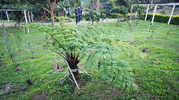 P園筆筒樹一年來生長茂盛,不亞於原生之山澗林蔭,一年前初植時只有一支捲曲葉芽,貼張美麗樹冠如傘之照片比對頗有成就感。近年筆筒樹出現原因不明的大規模枯萎死亡,已經造成台灣北部82%的筆筒樹死亡,疫情持續蔓延至全省各地,族群面臨滅絕危機。女婿要P園筆筒樹扛一個保種的功能,這一來還真有不能承受之重。
