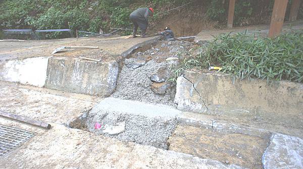 舊農路邊排水道設涵管接入沉沙池工程,上週開挖連日鋪管回填,今灌漿封面全部完成,下週開發公司將電請主管官屬最後認可。