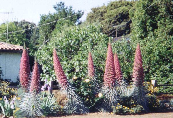 前述之不知名花有極茂密狹長茸毛葉,粉紅大花軸著滿花比人高,附兩張照片,祈網友專家們賜告植栽名字,勿使名花被稱呼「不知名花」。