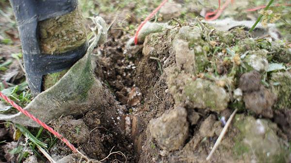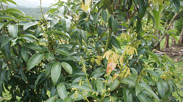 半年前環剝壓條荔枝發現環狀剝皮促進著果,至今主幹連出葉兩次才萌花穗,環剝枝未長葉直接出花芽。今將土撥開部份查看發根狀況,有些細鬚根都不夠粗,只將連接處鋸開2/3,減少主樹支援促進長根,延明春再分株獨立了。