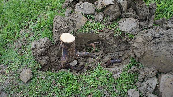 逛花市發現茶花攤有一堆油茶樹根,花商將油茶樹根都作過清洗及消毒處理,每根端還刷開根劑。兩年來投入人力.物力.心力最多之油茶樹,全部枯死連殘柴都已變灰燼,當初烈日強風肇致全軍覆沒,既已為成功之母-有寶貴經驗應善加利用,再接再厲再挑一低矮根多之油茶樹頭,選低矮是為減輕受風易架遮陽網,先求成活至於以後是否接枝茶花就不想那麼多了。