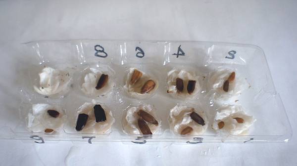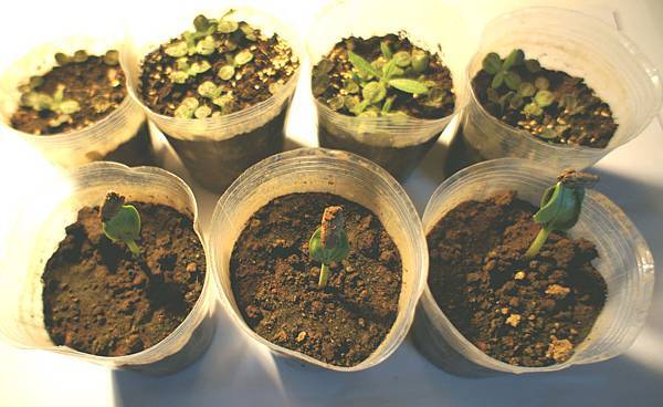 月初播種葫蘆,書上說5-7天會出芽,一日看五回盼出新芽,卄多天無聲無息,上週把種子掘出看看全無變化,只得重新再種,按Jeams方法-用恆溫40℃溫水先泡一週,種子尖端微露白再移植土中,期望關注第二批何時出芽,不料今早發現第一批有三盆葫蘆籽像聽到班長喊起立一般,突然一起破土站出來,意外驚喜高興之情拙筆難書,接下來的問題是P園瓜棚只有九株空間,若是兩批全育出有36株各式各樣葫蘆,怎麼辦?