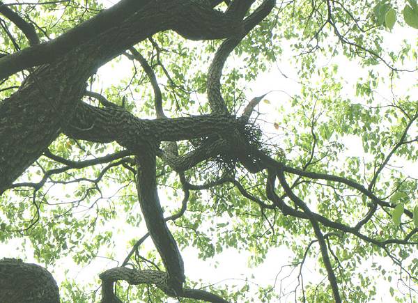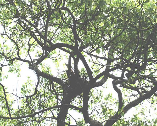 去年多篇報告黑冠麻鷺雛鳥成長歷程,今年麻鷺親鳥又回同一株樟樹上築巢,只是高了兩支樹幹,深藏濃密樹叢中,沒有無遮擋之制高觀察點,只能由下方看親鳥伸出頭趴坐巢中,猜想現已產卵在孵育中。