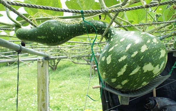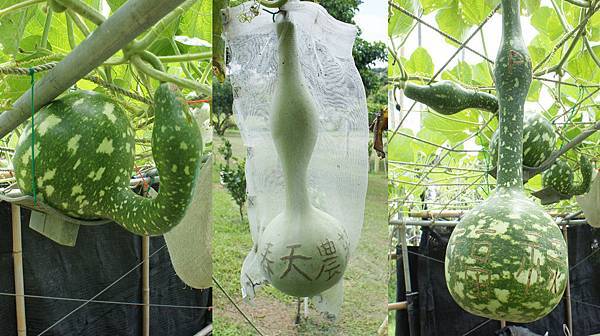 第二批(四月底)定植之葫蘆品種為小亞腰&細長柄,小亞腰已結實,袖珍型玲瓏可愛每個不及巴掌大。