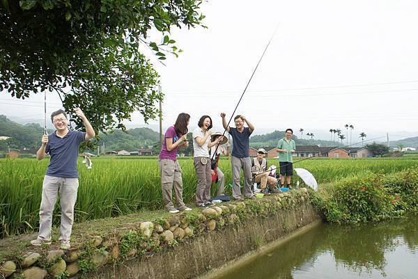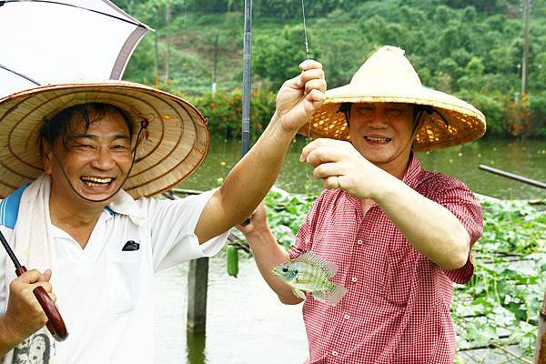 午後到附近池塘釣魚,到達後開始下雨,人人衣衫濕卻都好像無感,好在未幾雲散雨收青天麗日。九弟還在試水深調整浮標,未裝餌之鉤就勾著魚背鰭釣起第一條「姜太公之魚」。「本」輩兩枝竿釣到15條,贏過小輩之三枝竿13條,九弟個人9條居冠,還有一起竿掛兩尾之佳績,其中一尾未吃餌是路過被勾到下巴,姪孫奪最大尾獎,兩個多小時裏,三.五分鐘就有一陣驚喜歡呼,我當記分裁判收魚報成績也忙得不已樂乎。