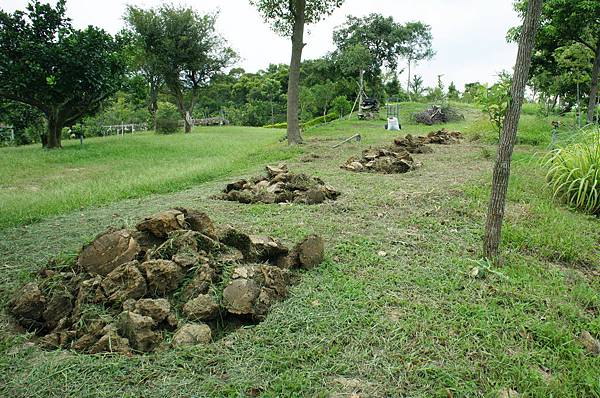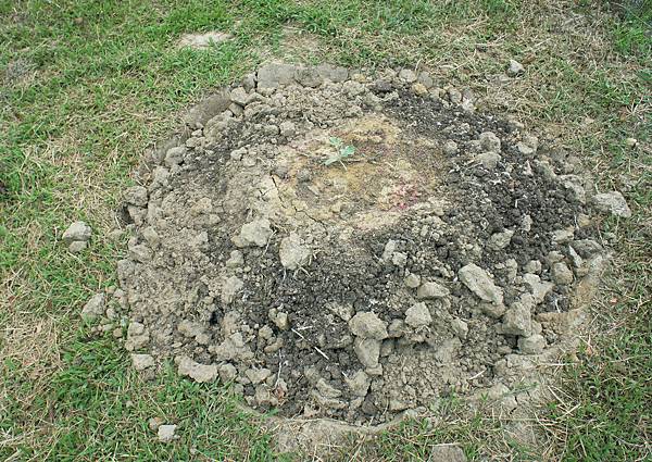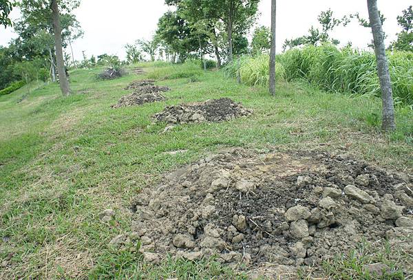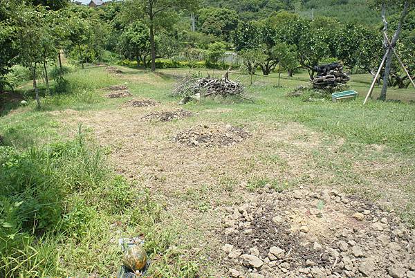 三月份於西側高台地採「自然栽培法」種西瓜.蒲瓜.南瓜,因高台地是砂質土,適合瓜類生長,收穫豐碩品質特佳人人稱讚,如今瓜收完藤蔓枯,種苗行還有第二期瓜苗出售,又開闢13個種植畦,每個深0.3m x 1㎡,敲碎土塊後拌#43複合肥1㎏,及乾燥雞糞&堆肥土各10㎏,楊老農當然無法負荷於36℃炎陽下如此重活,這是請小蘇用汗水栽培,期有更好地成果,盼白露採文旦時能有西瓜招待佳賓。