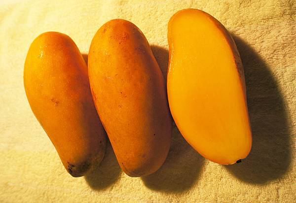 第一次在水果行看到紅龍芒果,買三粒嚐嚐,果皮果肉都呈橘紅色,細緻無纖維入口滑順很甜,可能因非「在欉紅」,香味&口感不若自家「在欉紅」的金蜜芒果。