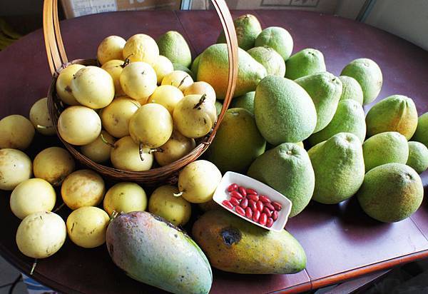 蘇拉颱風以類似西北颱路徑襲台,「西北颱」未受中央山脈阻擋破壞,所以對台灣西部風雨強勁。週三入園防颱工作,還只是外圍環流已枝折果落,原嫌今年文旦少,今見壓得低垂枝幹隨風擺蕩,又心痛結果太多了,文旦.芒果是未熟吹落,大風把枯枝藏擋之已熟百香果都吹下來,一次收卅多粒是意外收穫。新種西瓜蔓藤像舞鞭亂甩,用η形釘固定。芭蕉已結果株加支撐,於風雨中臨時抱佛腳防颱,已盡人事剩下就聽天由命了。