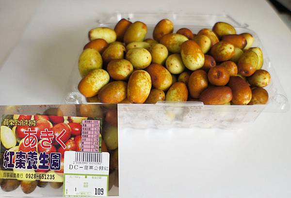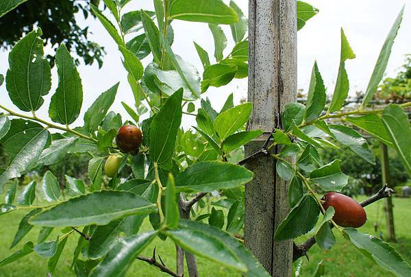 栽植八十餘品種水果,多為市場少見稀有,黃金果已三年尚未見過花,台灣棗子向來都是綠色大蜜棗,種株紅棗想與眾不同,今年首度結果幾粒,已經成熟磚紅色,自以為稀有捨不得吃保留欣賞,從日前水果行出現紅龍芒果後,今也有黃金果.紅棗了,居然價都極廉一大盒百元,我這一樹寶貝不到五元令人氣結,農人難為糊口不易。
