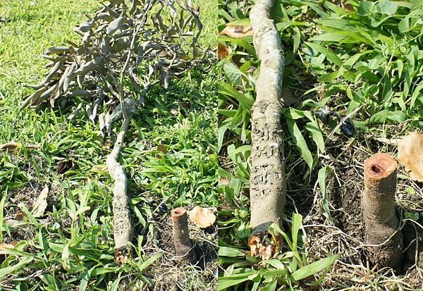 初五女兒帶來黑殭菌,這是能使天牛等蛀幹害蟲致病的真菌,居然有如此利器,真是夢寐而不可得之寶貝,當天立即利用全園灑水系統施佈,解除心頭第一大恨。