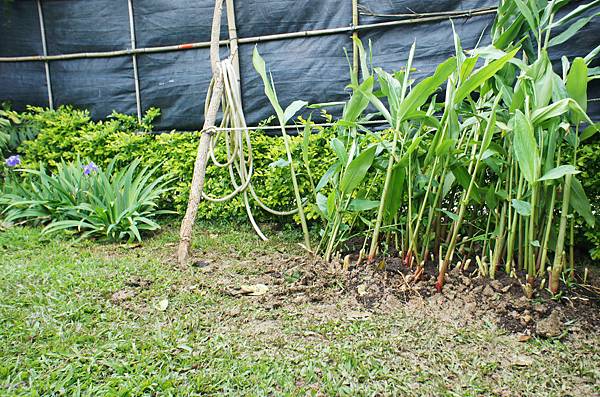 ,挖深植穴底部加塑膠布蓄水,營建一個適合薑花之