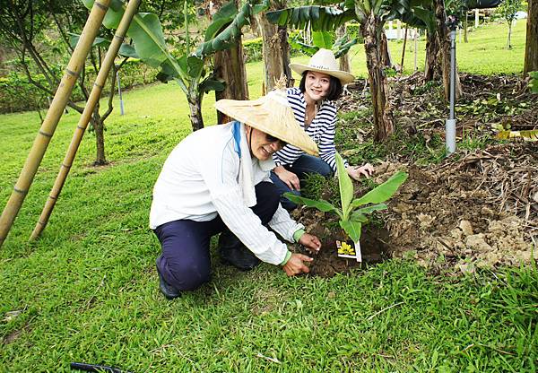 女兒及婿也都專程參與盛會,順便帶來六盆蛋蕉,因蕉園已太大,再擴充壓迫周遭果樹,只能勉強再擠兩株,其他就分贈O&R園種植。