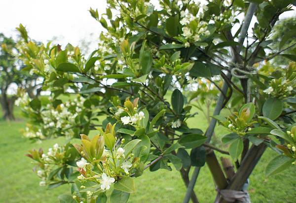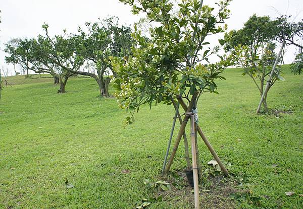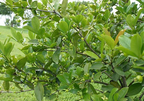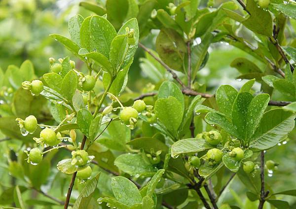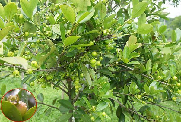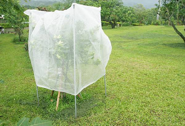 去年巴西櫻桃首度開花,但最後成熟時只得五粒,不夠塞牙縫也無法請眾親友分享,今年樹大了些,三月初花開滿樹,著果率也提高許多,概估約有千粒果實,巴西櫻桃成熟時間約在花後45天左右,現有少數開始變紅,預估在四月底變紫黑色就可採收了,為防蟲害鳥啄套裝上天羅地網,想嚐鮮親友請即安排行程,雖不能讓眾人吃到飽,但可充分品嚐其甜似櫻桃又似番石榴的獨特風味。