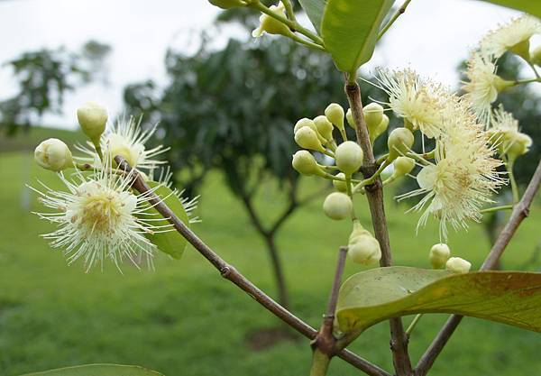 三天前種植之黑珍珠蓮霧開花了,它與蒲桃及芭樂都屬桃金孃科,附三張各花照片果然是一家人。