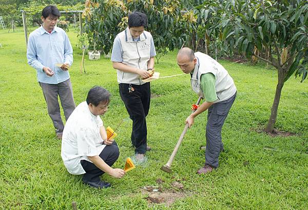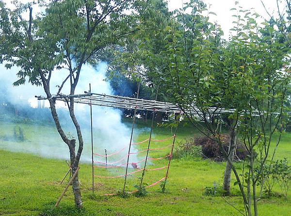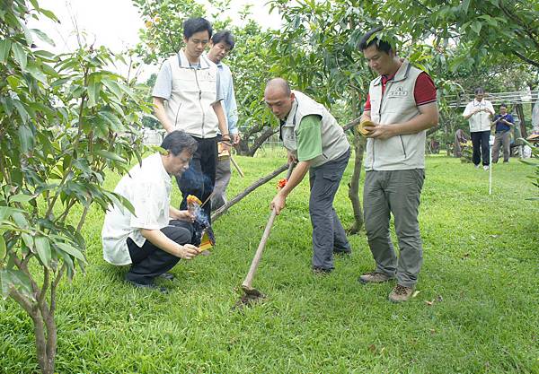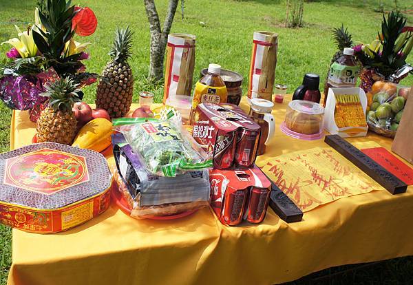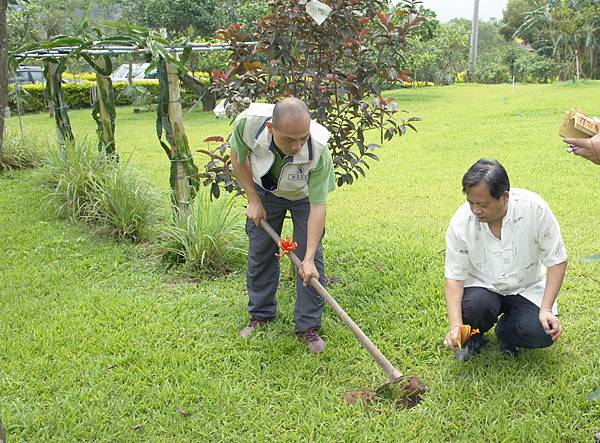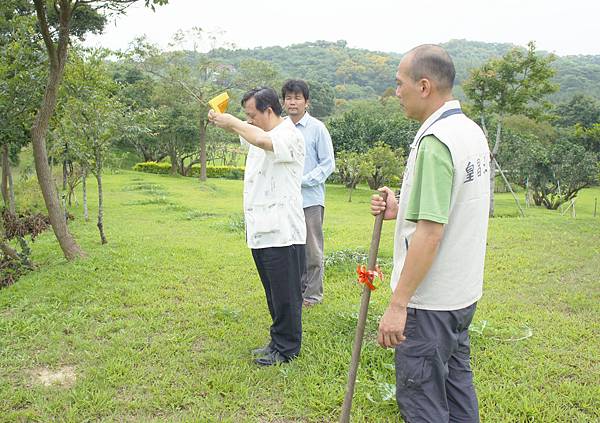 於通霄購農地設戶籍轉眼四年,兩年前開始申請農舍建照,過程繁複一波三折,去年底認為即將水到渠成,BLOG報導萬事俱備只欠東風,不料又過半年還在望東風,臆度建照近期應可核下了。春天農莊的農舍希望擇在春季開工,不要東風來了還要等黃道吉日起基,楊老農敬天禮地隨俗抓住春天的尾巴,吉日良辰先舉行動土開工之儀式,以祈求開工動土平安大吉,建造過程圓滿順利。開工日是以主人八字去擇合,取得吉日啟動地氣,祈求興工順利,讓房子蓋好後,住在裡面的人與天地磁場運行相結合,獲得天地之氣理,運行炁長延綿。開工儀式由承建老闆主持,率其員工及協力廠商代表八人共襄盛舉,場面莊嚴虔誠恭請眾神祇庇佑,拿綁有紅綵帶的鋤頭左手左腳朝前,東南西北四方摒息閉氣將土翻動,儀式性地定出建築的範圍,表示工程正式展開,儀式結束後放鞭炮、燒金紙,並隨即赴本境土地廟祭拜,向福德正神稟報動土開工。