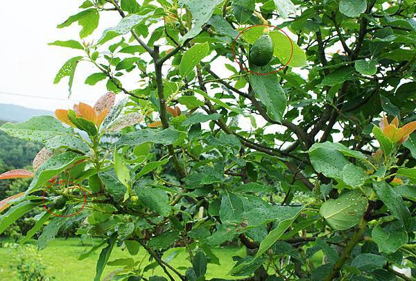 去年酪梨&荔枝花滿樹,但都是一粒果也不結,當年買的酪梨是可自行授粉的Hass品種,其他品種需要開花特性不同品種混雜才能授粉,但是酪梨連年開花不結果,曾懷疑可能非Hass品種,如今結了兩顆已1in大,也總算消除疑慮了。酪梨成熟與一般果實不同,在樹上不會變軟,成熟後能留樹上掛藏一個月以上而不掉落,判斷成熟的方法是:果皮由明亮光彩變成無光彩,果柄開始變黃時大致接近成熟,此時摘下來經過5~10天左右後熟期,變軟就可食用了,它是糖分含量低,植物性脂肪高之營養水果。