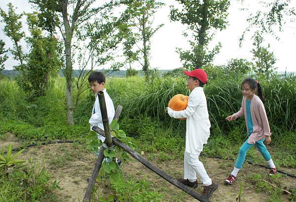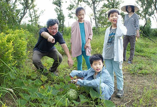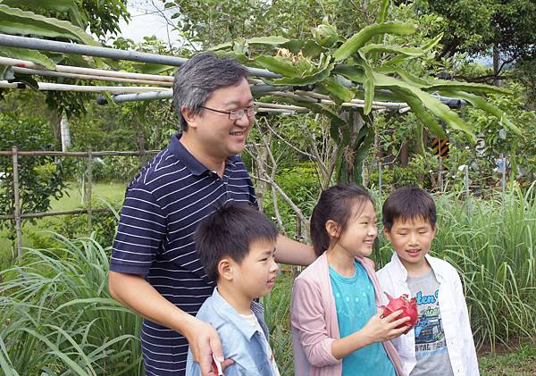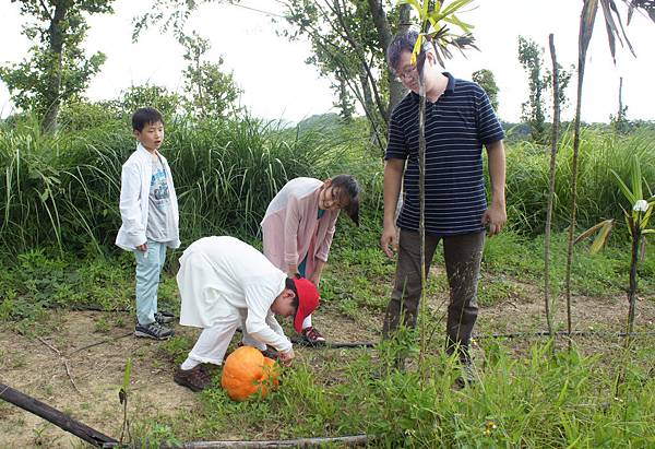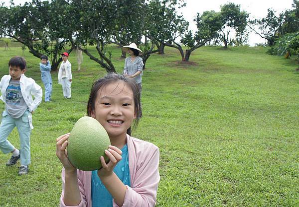 最耽心的小黑蚊咬嫩肉幸未發生,小朋友摘收水果興緻勃勃,摘神秘果、幫忙割香蕉、輪流收西瓜.蒲瓜.大南瓜.木瓜,剪未熟之文旦.檸檬、無花果、。品紅龍果是在摘神秘果之前,說好吃是真味覺,但接二連三再說西瓜香.檸檬甜就不能當真了。