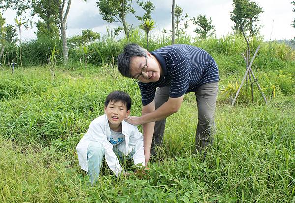 孩子們精力旺盛滿園追逐,西平台陡坡也直接衝上跑下,摔倒流鼻血哭幾分鐘後,繼續興高采烈奔跑,為消耗他們過剩體力,帶登農莊最高點-水塔頂觀景台,遠眺東山.西海之優美景色,鳥瞰P園青草如茵綠樹盎然頗為心慰。
