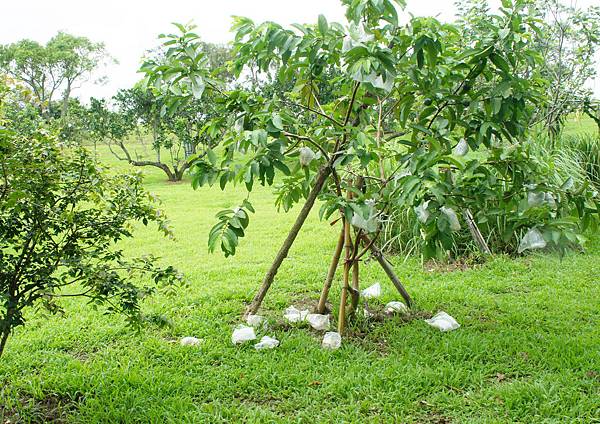 特留三個大紅龍果,預備今天收摘週日聚會請大家品嚐,但入園一看都不存了,摘落點圓整,不像人剪會割削一段莖幹,芭樂樹下遍佈套果袋,樹上也有許多抓破的空袋,顯然又被果子狸光顧了,它們可能多隻集體行動,以前吃香蕉一次吃幾十根剩皮掛樹上,卄幾個芭樂及紅龍果,也非三.五人吃得完。既然又被盯上,狸口餘生(未熟)水果也只有趕緊都摘下來。