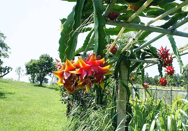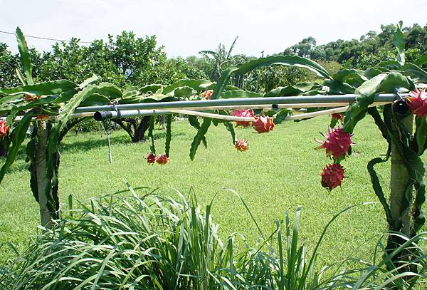 七月中為蘇力風災善後,疏忽紅龍果疏蕾,以致月底時紅龍果花滿棚,於今又同時成熟,棚架上這幾天有卅餘個紅龍果陸續變紅,因未疏蕾調整產期,而致又集中產出這該怪誰?