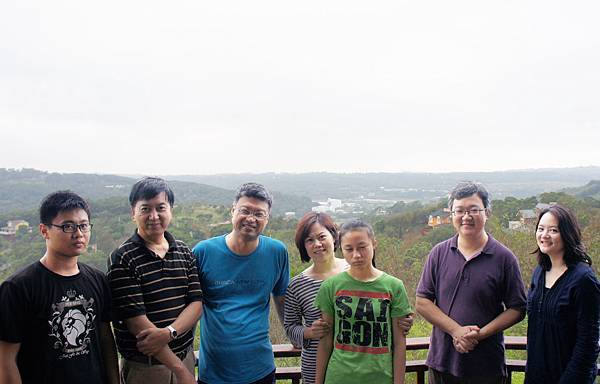 大家回憶四年前初臨農莊景色,與今天相較樹木高大許多,草園也更整齊美麗,大夥齊赴觀景亭鳥瞰農莊全景,多幾棟農舍點綴其間果然更生動美麗,過大半年後再看時加上了P園農舍,不知會不會對美景再加分。
