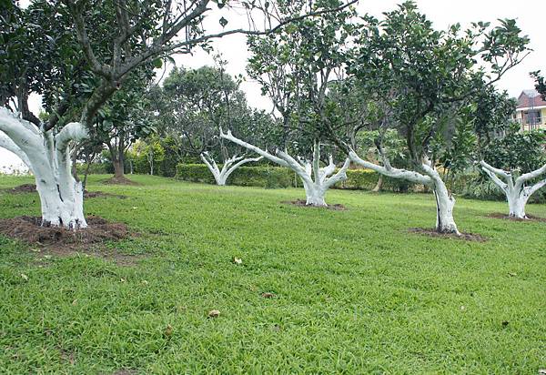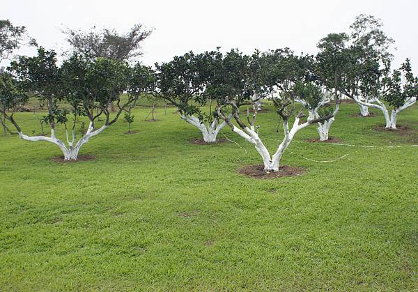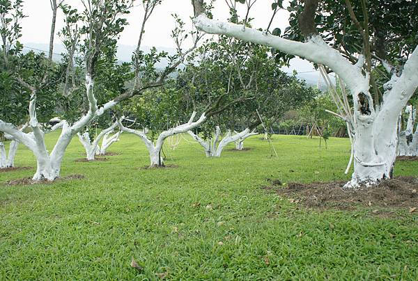 天牛通常在距地面約一公尺樹幹產卵,塗上石灰可防止天牛產卵,免得幼蟲鑽進樹幹中蛀食,有些蟲生活在土裏,樹幹塗上了雪白的石灰,土壤裹的害蟲便不敢沿樹幹爬上去啃食果葉,氫氧化銅可消滅在樹皮縫隙中的真菌、細菌和害蟲,所以將14株老叢文旦全都塗上類波爾多漿,只是不知氫氧化銅會不會被吸收,明年結的文旦會不會有「銅葉綠素」。