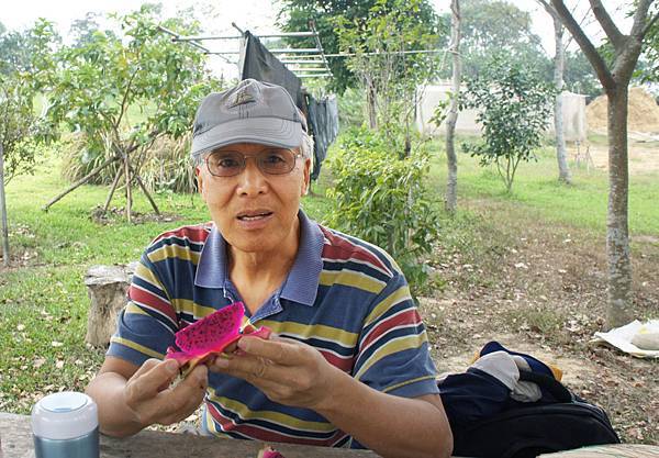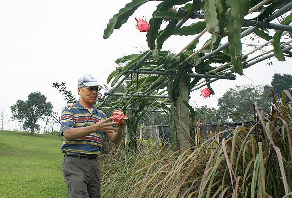 紅龍果十一月起就停止萌花蕾,Charles趕上最後一批紅龍果成熟,正好以此酬謝辛勞,也品嚐了樹上熟的木瓜.香蕉.柳丁,王園主也向Charles推薦P園水果讚,吃了楊老農芭樂後,買的芭樂都不要吃,晚餐還蒙王園主夫婦請客。