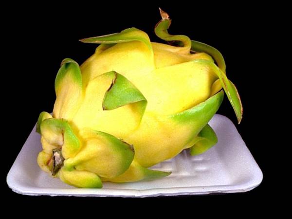 Mr.沈居舊金山,夜間氣溫0℃以下,為種植之熱帶植物避寒,將後院游泳池改成溫室,其間種有黄色火龍果,其果皮黃色有刺,果肉扎實水晶質地口感極佳,甜蜜度是紅、白火龍果無法比擬,黃龍果花蕾期長果實成熟期也長,但甜度高、永不裂果,是火龍果家族中之極品,Mr.沈推薦P園種植黄龍果。