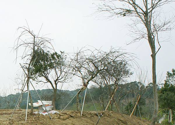 梅樹樹冠蒼勁挺拔,花不懼嚴寒欣欣向榮,從梅、蘭、竹、菊等四君子;松、竹、梅歲寒三友的比喻,都有梅花這唯一的花類入列,可見中國人對梅花的喜愛。春節期間赴龍潭專業培育梅.櫻花之農園參觀,挑選了不同品種梅花七株,分別為紅垂梅、白垂梅、紅梅、宮城粉梅、鹿兒島紅梅、玉牡丹梅、粉台閣梅,還有紅粉佳人櫻花及富士櫻各一株。