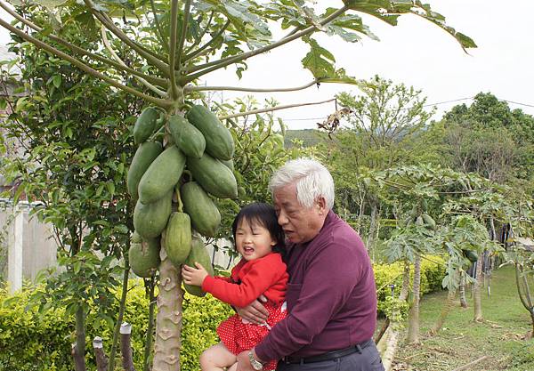 楊老農還是邀大家到P園走動,春分時節吐新芽冒嫩葉,嗅初開的文旦花香,彌的小孫女有福,在青青草地跑跳,於水果青黃不接期,也能摘到黃金果.金橘.芭樂.木瓜….。