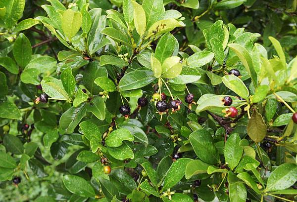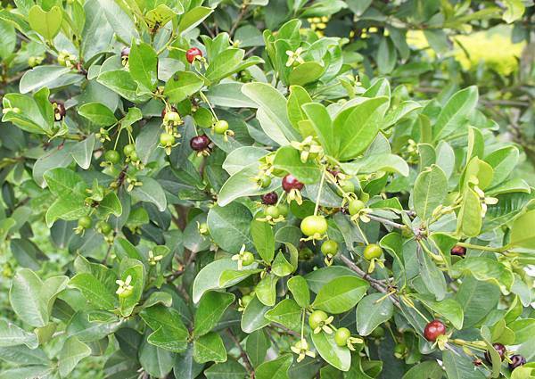 今有少數巴西櫻桃呈紫黑色,女兒趕上收摘首批,微甜帶酸並非很好吃的水果,又太小也吃不過癮,但收穫的歡愉感,再加清新空氣及美景,還是可值回車資,歡迎親朋來踏青,嚐試市場買不到的水果。